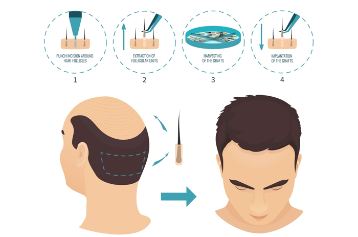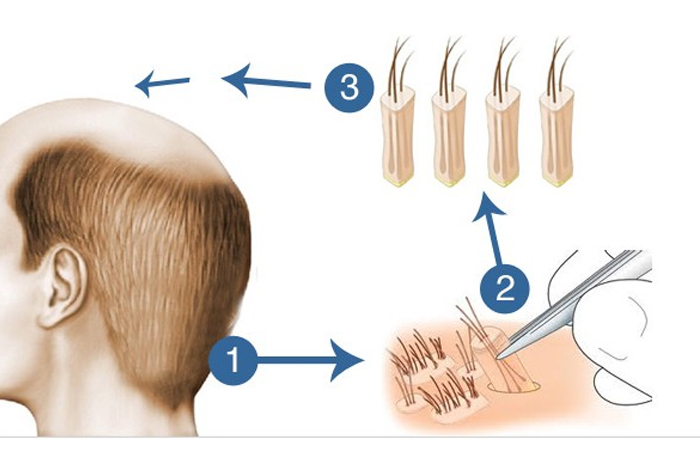 Each unit contains one to four hairs. These one to four hair groupings (called follicular unit grafts) are then transplanted into the balding areas of your head. In this method thus, there is no need for the surgeon to make a long incision in the donor area, as in the FUT procedure.