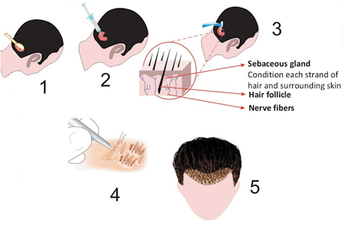 Hair transplants typically occur in a medical office under local anesthesia.